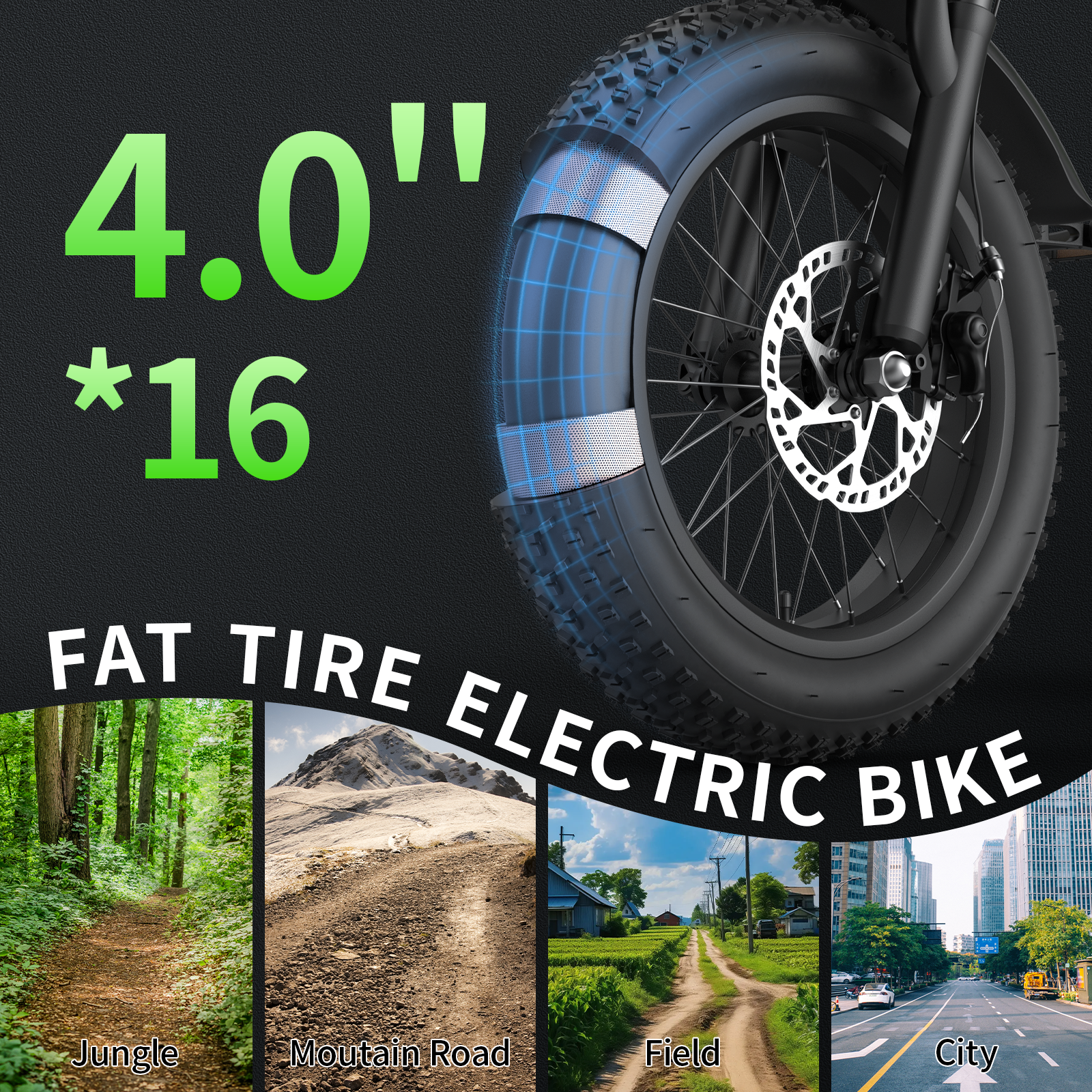 Jansnox90 is equipped with 4.0-inch by 16.0-inch wide snow tires. These tires have been specially designed to prevent blowouts and enhance traction, while also improving stability and grip on various terrains-each ride offers a smoother and safer experience.